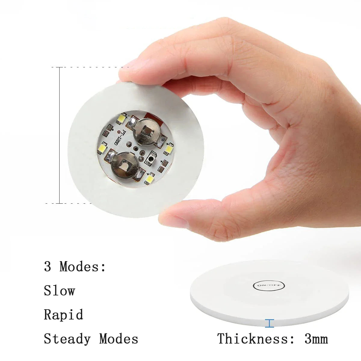 Each coaster is made with a laminated foam core board and features 4 ultra-bright LED lights, offering three lighting modes — fast flashing, slow flashing, and steady glow — to match the mood of your event. Simple to use, just peel, stick to the bottom of your bottle or glass, and press the ON/OFF button. With long-lasting button cell batteries, your lights can glow for over 24 hours, keeping the party lively all night.