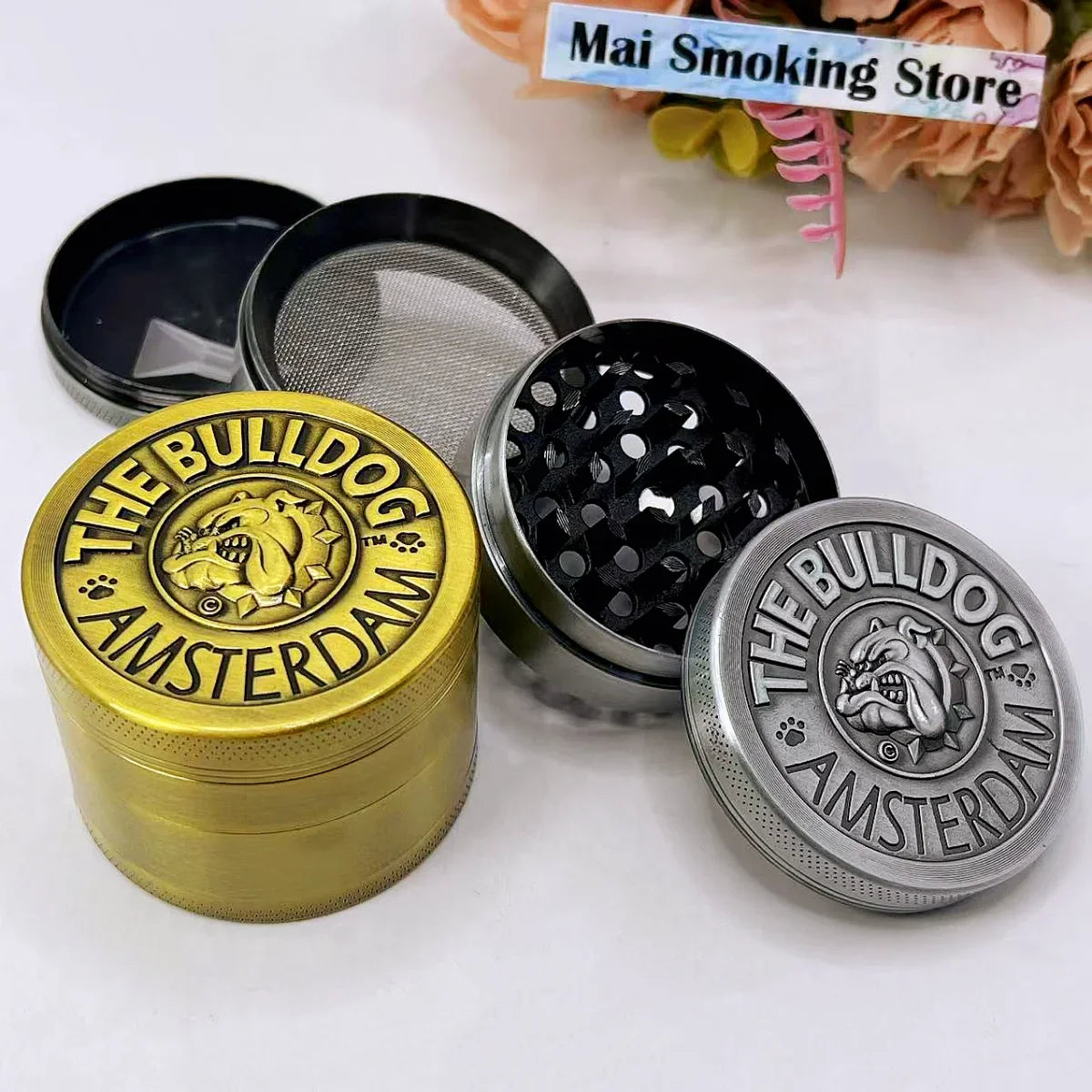 Grind your herbs, spices, and tobacco with style and precision using this Dog Herb Grinder, crafted from durable metal with a 4-layer manual design. Available in 1.6-inch and 2-inch sizes, this grinder features a bulldog motif, combining fun aesthetics with high functionality.