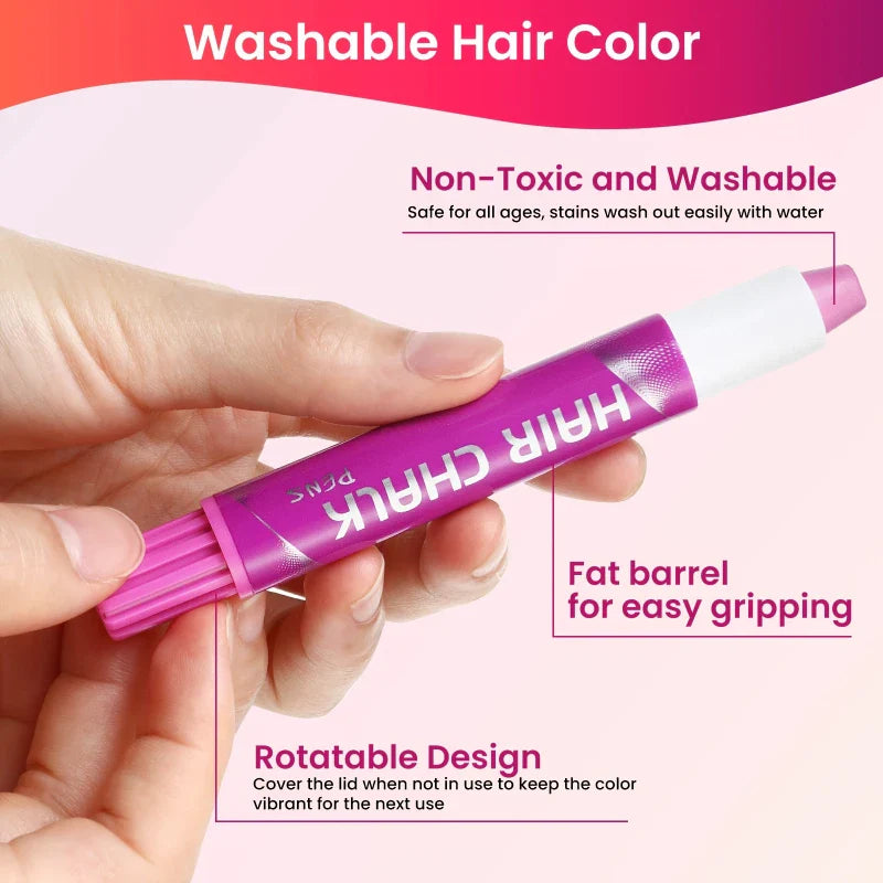 Add instant, playful color to your hair with the Hair Chalk Pen — a temporary, washable, and non-toxic hair dye perfect for festivals, Halloween, parties, cosplay, or just experimenting with fun hair looks! Easy to apply and safe for all ages, this chalk pen lets you create bold streaks, highlights, or full-color transformations without commitment.