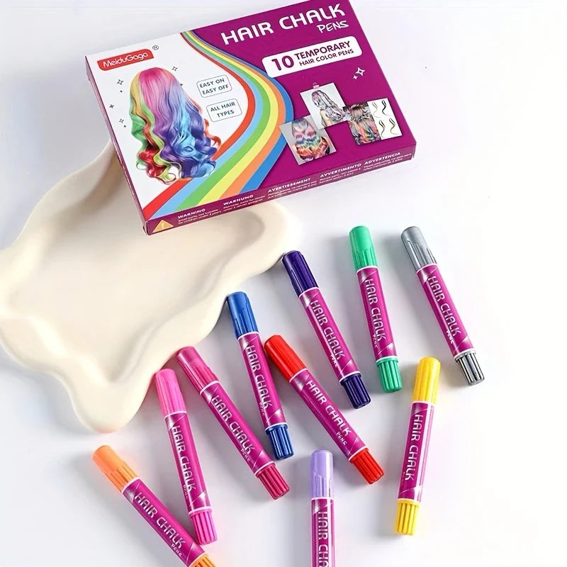 10-Piece Hair Chalk Pen Set – Temporary Washable Non-Toxic Hair Color for Festivals, Halloween & Parties