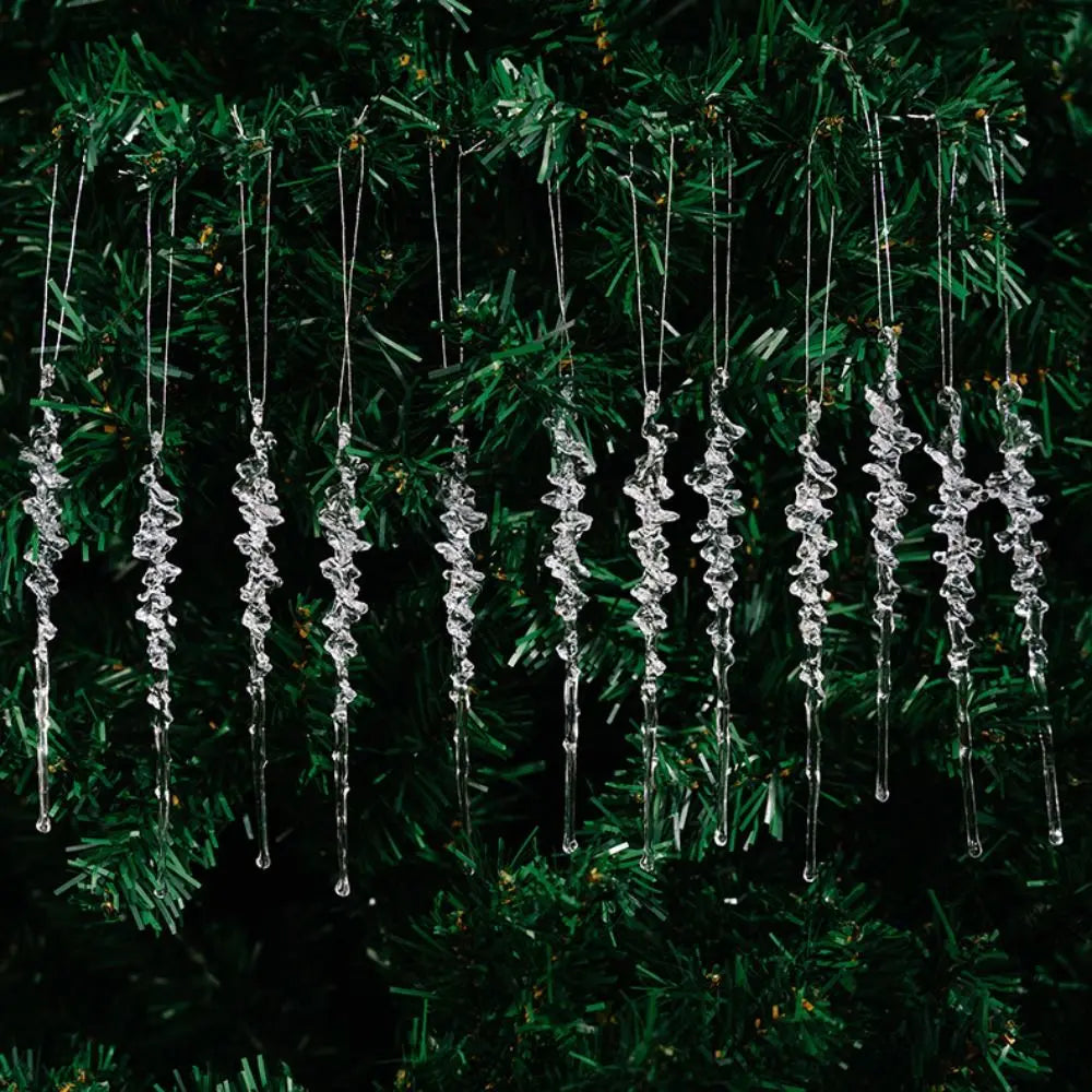 Add a sparkling touch to your holiday décor with this 12-piece set of transparent Christmas hanging pendants. Crafted from durable acrylic plastic, these festive pendants feature snowflakes, beads, and star shapes, perfect for decorating Christmas trees, windows, wreaths, or party spaces. Lightweight and easy to hang, they bring a shimmering, elegant vibe to any seasonal display.