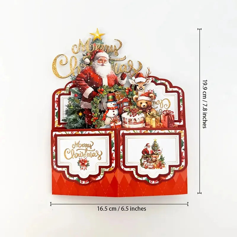 Christmas Party Greeting Cards — 3D Pop-Up Santa Card w/ Envelope | Merry Christmas & New Year 2026