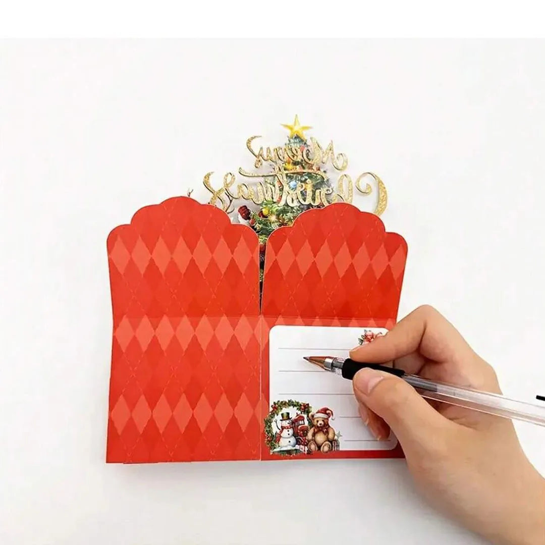 Designed for holiday parties, gift tags, office Secret Santa exchanges, or sending by post, these cards combine playful design with practical convenience. The pop-up mechanism folds flat for mailing and unfolds into a charming 3D scene that people will want to keep on display. Choice of styles and customization available — add a custom message or recipient name to make every card uniquely yours.