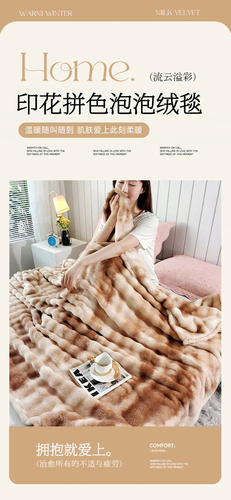 2025 Gradient Color Bubble Fleece Blanket – Double-Sided Milk Fleece Sofa & Air Conditioner Nap Blanket