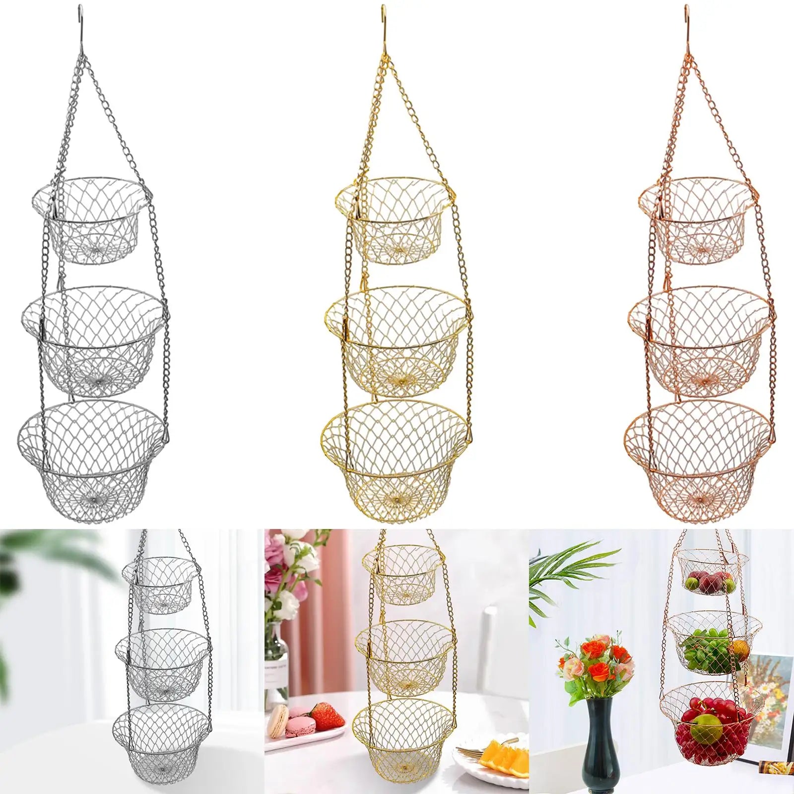 Elevate your kitchen organization and keep your produce fresh and visible with this 3-tier hanging storage basket, the perfect blend of style and functionality.