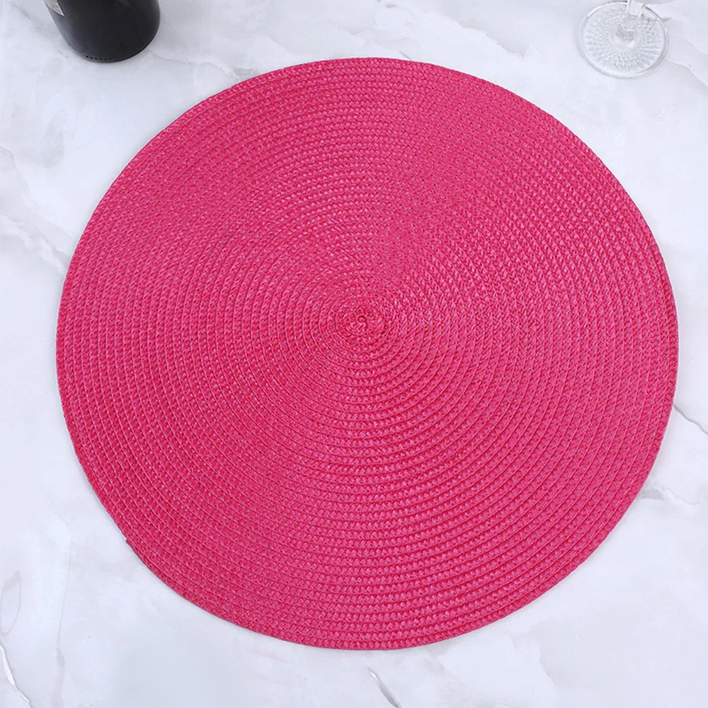 38cm Round Braided Tableware Mat – Washable, Anti-Slip, Heat-Resistant Dining Placemat and Drink Coaster for Home Decor