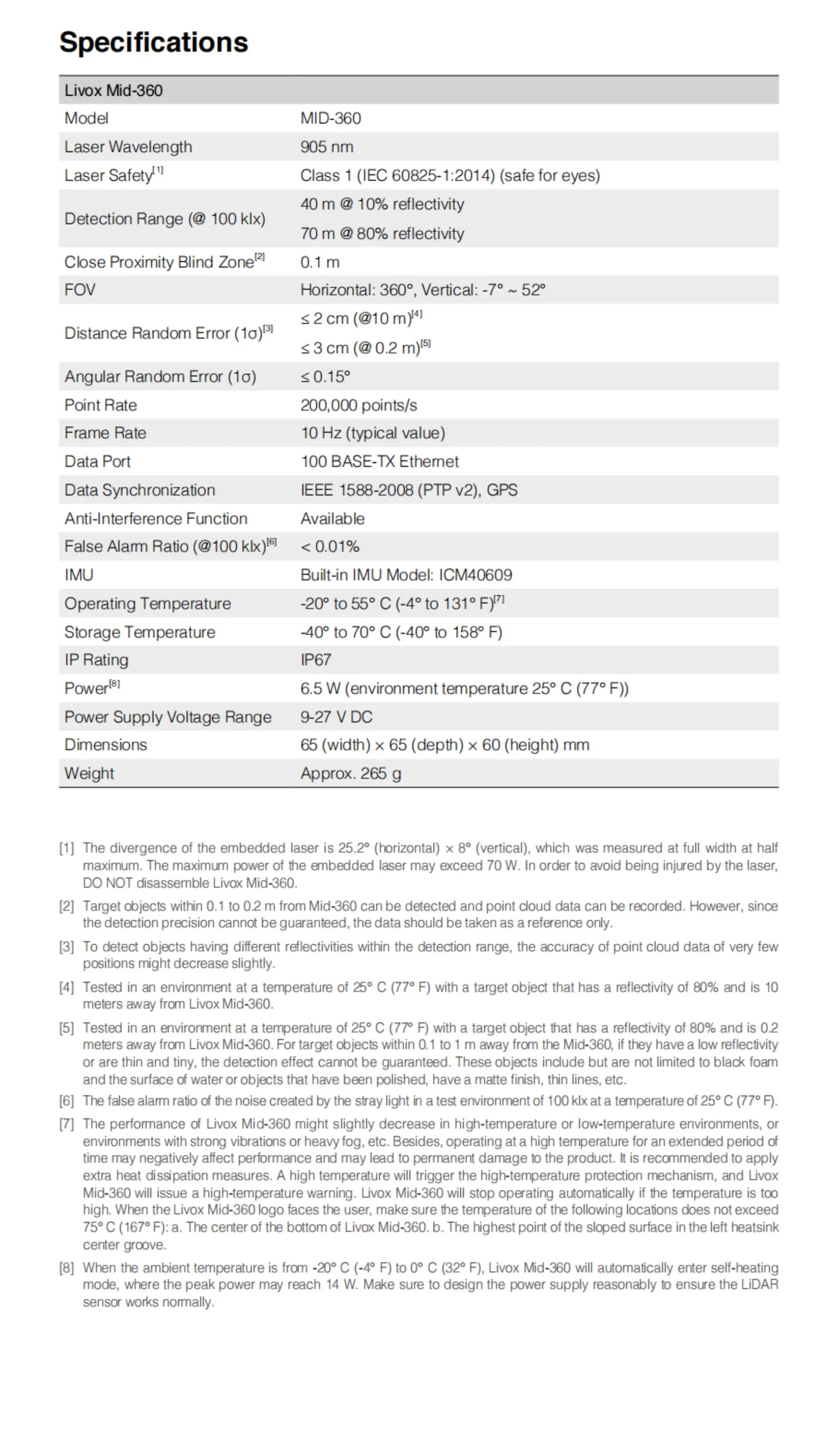 Engineered by omni-in, the Mid-360 LiDAR delivers high-resolution 3D point cloud data, capturing the environment in full detail. Its omnidirectional scanning capability ensures no blind spots, making it ideal for robotic navigation, industrial automation, and research projects. Compact, CE-certified, and compatible with a wide range of systems, this LiDAR module elevates your environment sensing capabilities to the next level.