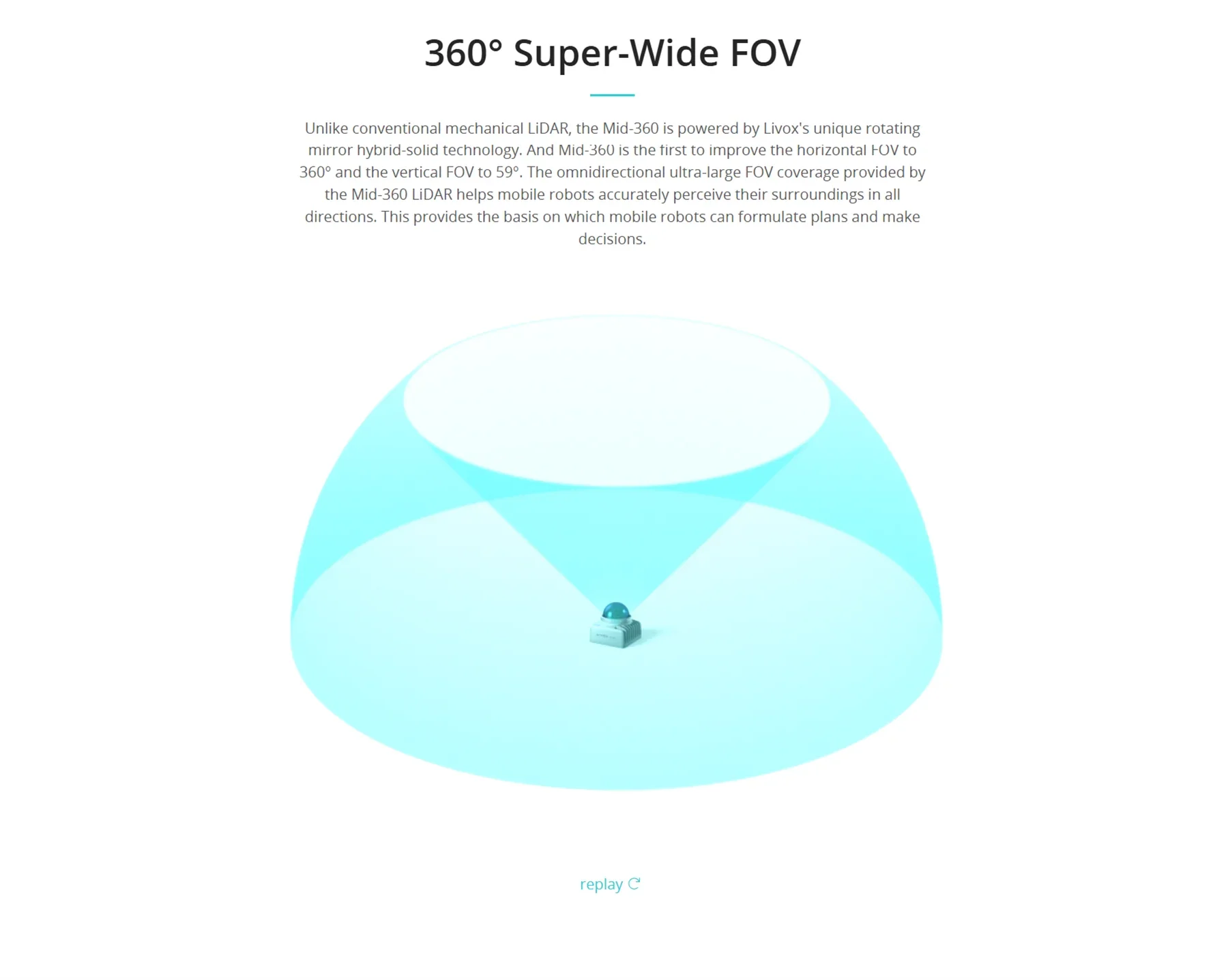 Experience next-level precision with the Livox Mid-360 3D LiDAR, featuring a 360° omnidirectional ultra-large field of view. This advanced laser detection and ranging device is perfect for autonomous vehicles, robotics, mapping, and surveying applications that demand accuracy and reliability.