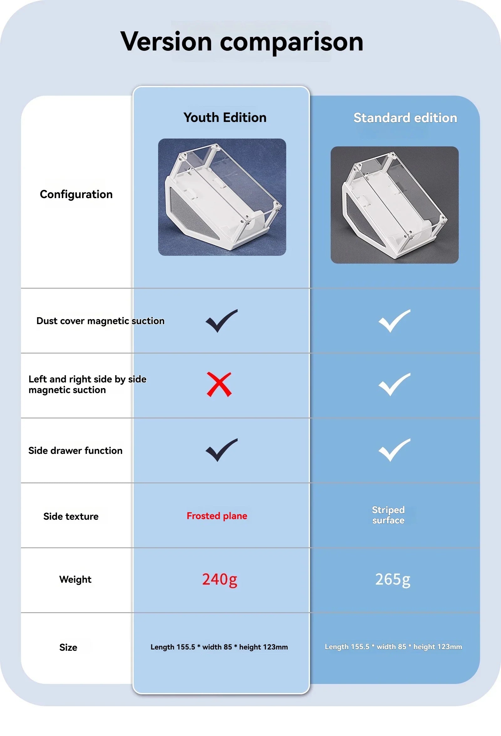 Material: Transparent acrylic, durable and dustproof