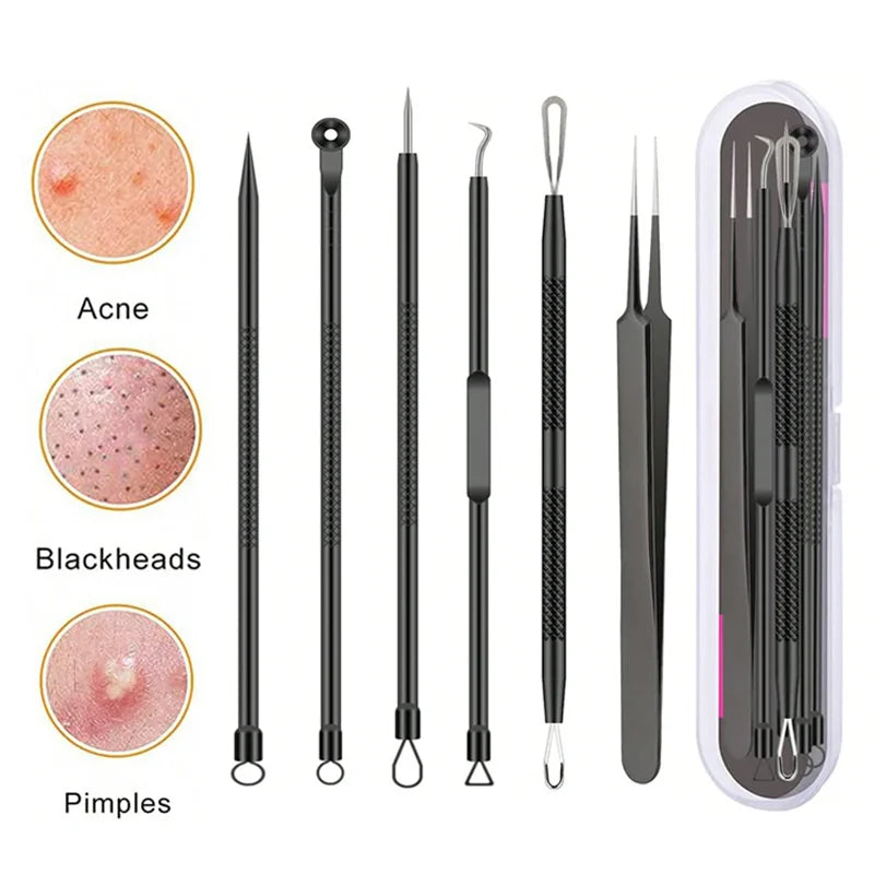 🧴 6PCS Complete Kit: Includes tools for blackhead, whitehead, and pimple removal.