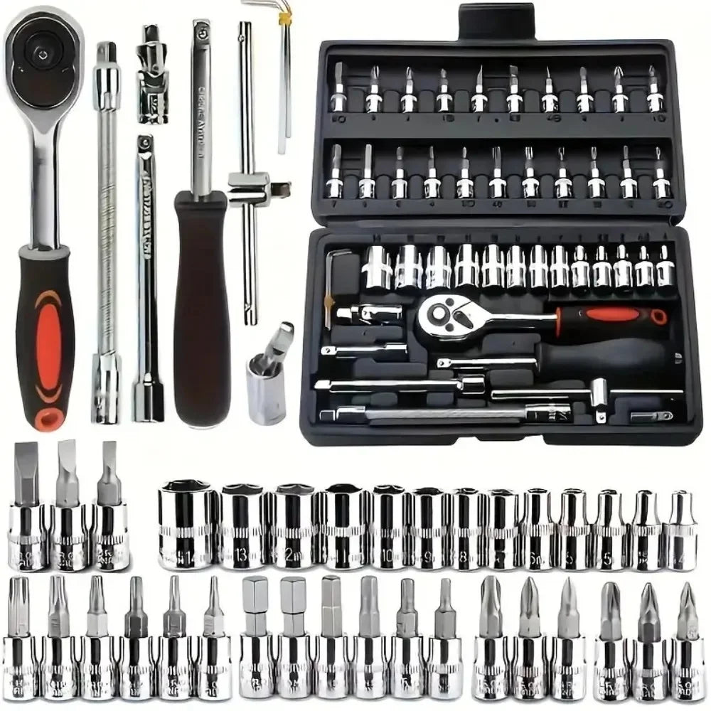 Complete 46-piece set: Everything you need for auto repair, including combination wrenches, ratchets, and sockets.