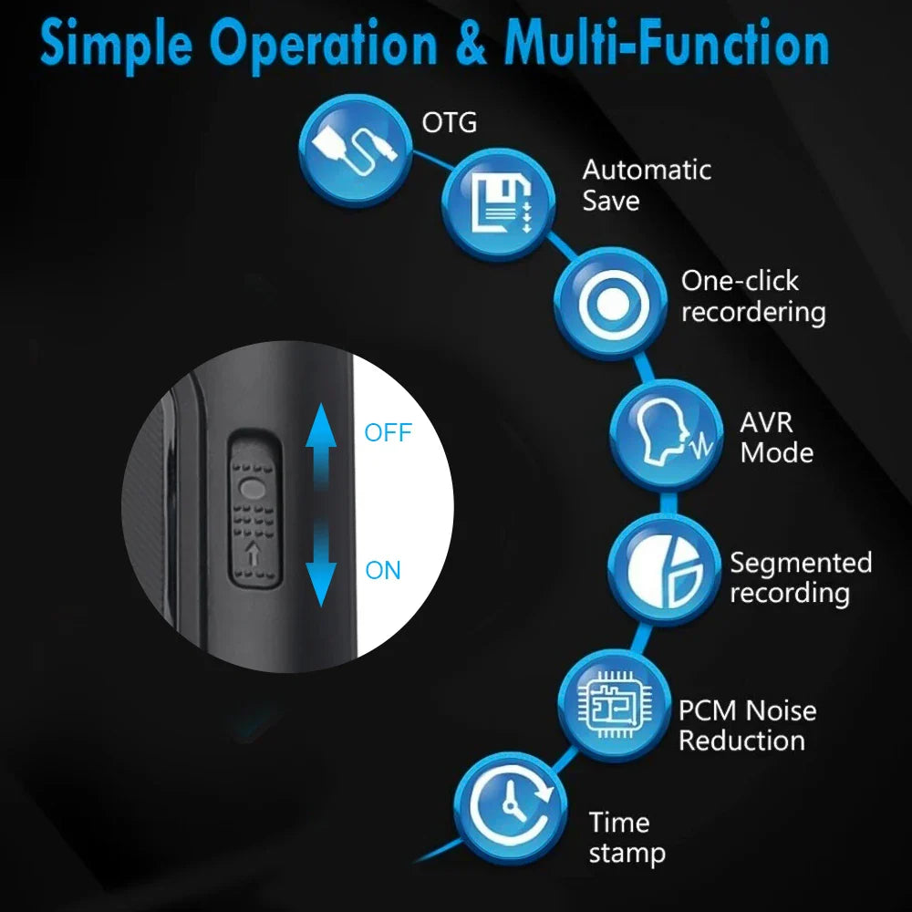 Capture every important lecture, meeting, or discussion with the 500 Hour Digital Audio Recorder by occkic. Equipped with a built-in HD microphone and 32GB or 64GB storage options, this professional recorder ensures crystal-clear sound with an impressive recording distance up to 50 meters.