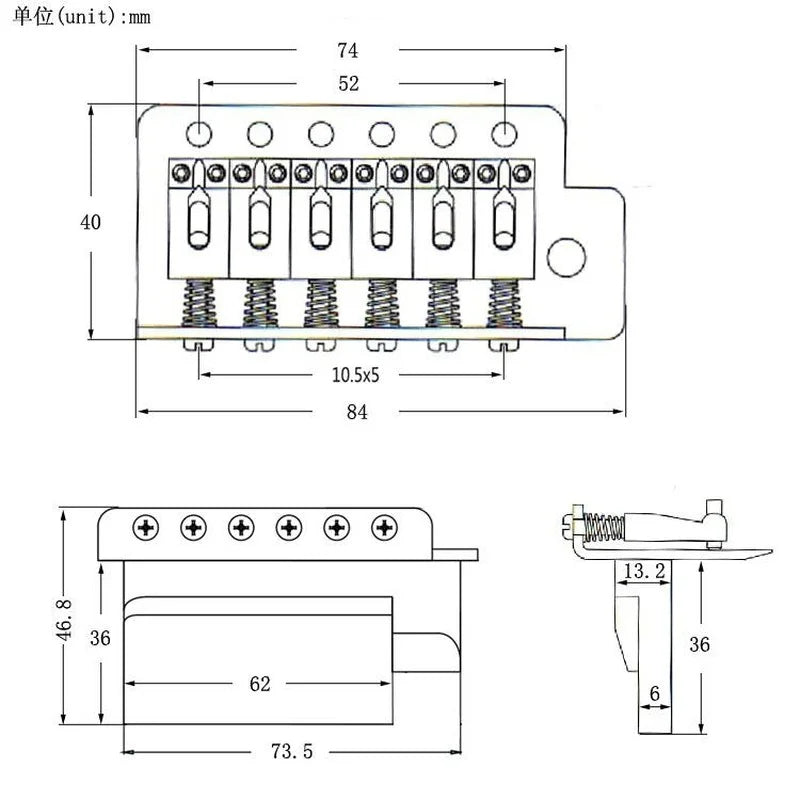 Upgrade your electric guitar with this high-quality 6-string bridge saddle tailpiece, designed for Strat, SQ, and ST-style guitars. Crafted from durable metal, this tremolo bridge ensures stable string tension, smooth tremolo action, and precise intonation, enhancing both playability and tone.