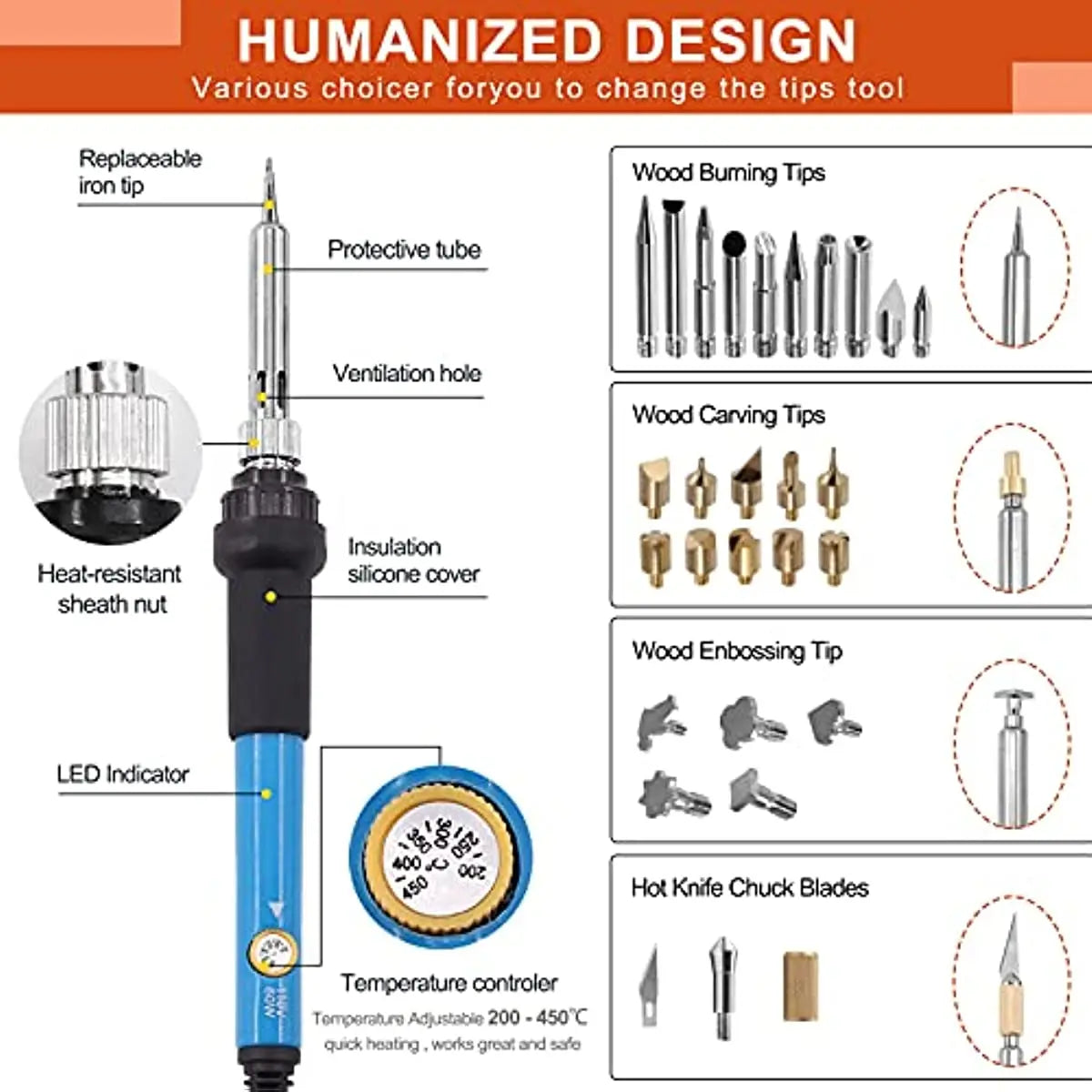 Ideal for wood burning, embossing, carving, and soldering