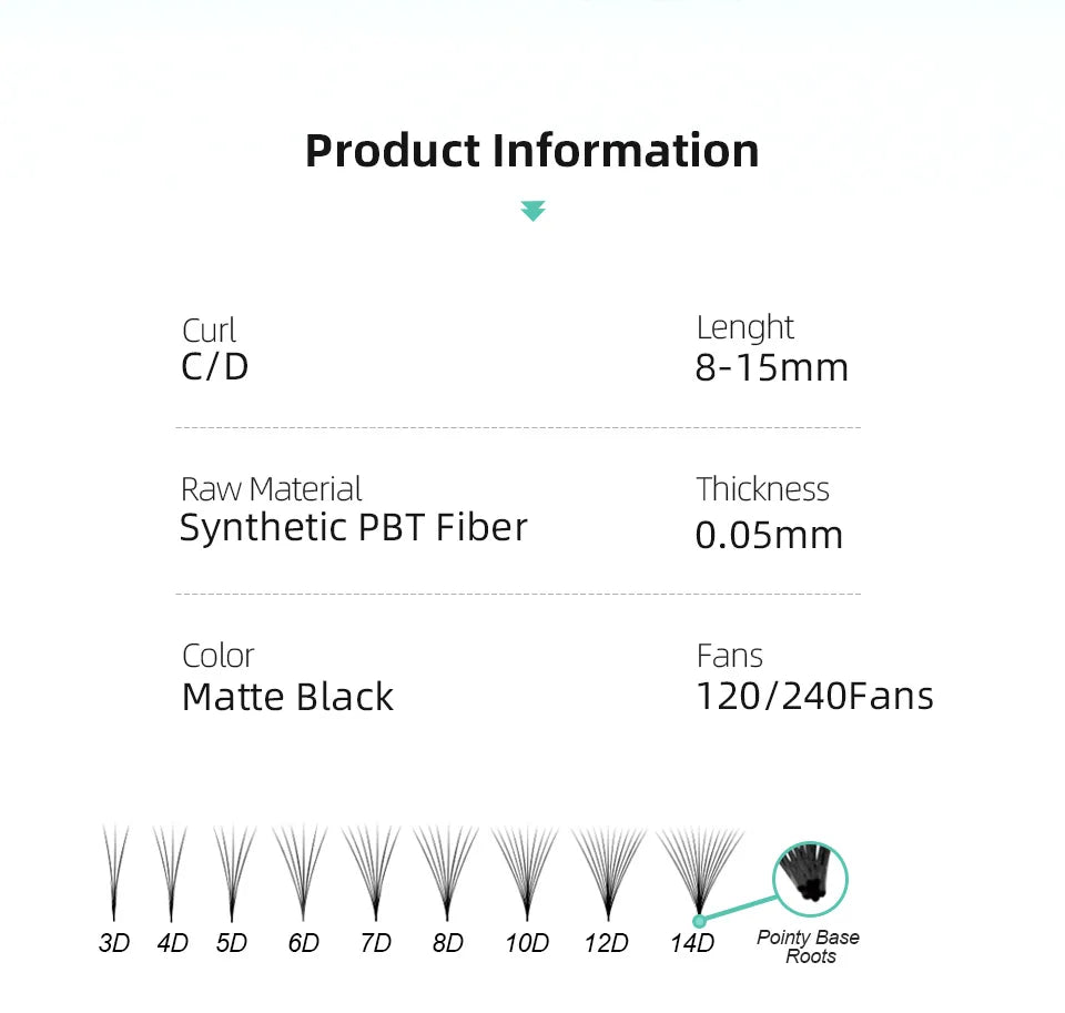 Elevate your lash game with AGUUD Premade Volume Lashes, perfect for professional salons and DIY lash artists! This 10-tray lot features super fans with needle pointy stems and narrow bases, designed for precise application and maximum volume. Crafted from premium Korean PBT synthetic hair, these lashes are lightweight, durable, and easy to apply, giving your clients or yourself a full, glamorous lash look that lasts. With a variety of curls (C, D) and lengths (8–15mm), these premade fans suit all skill levels—from beginners to advanced lash stylists.