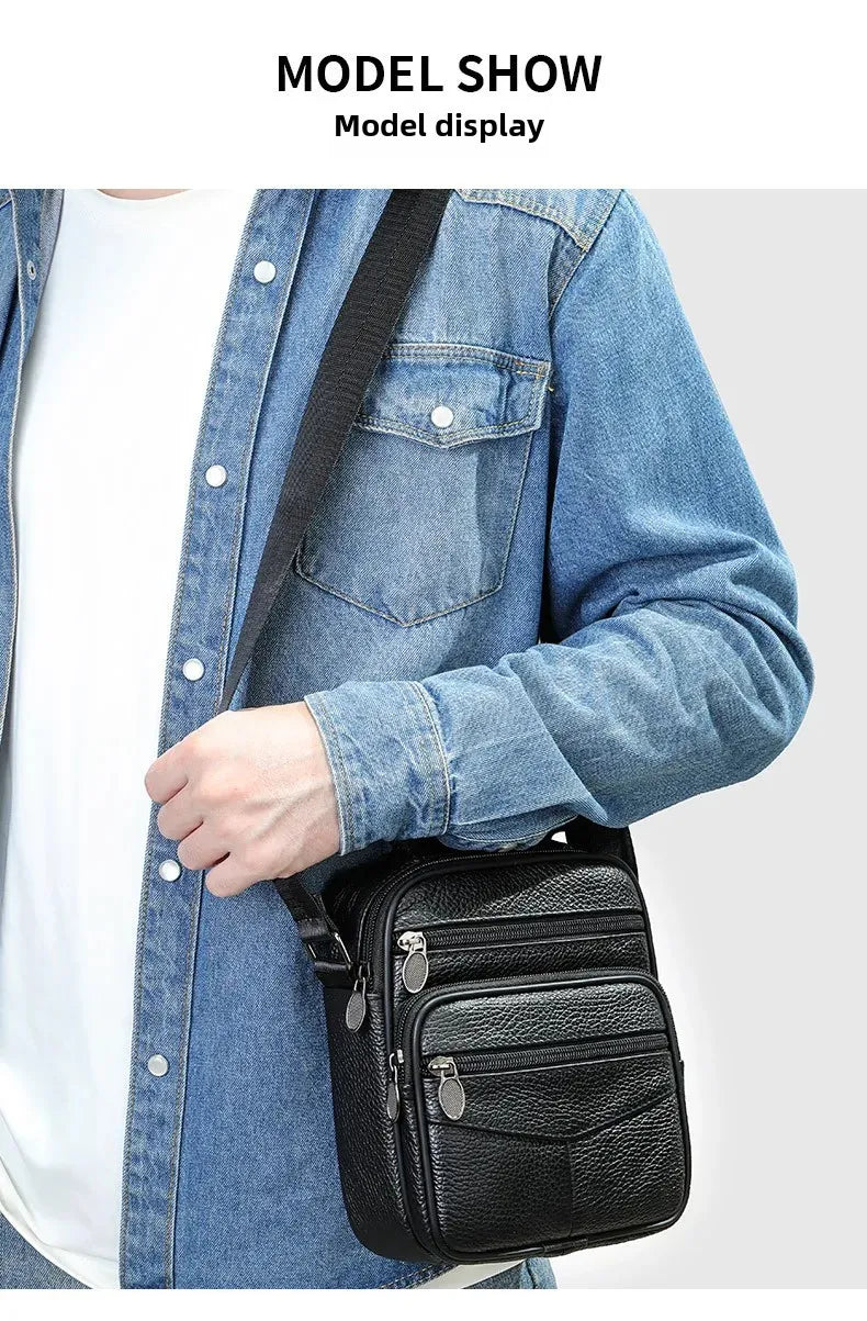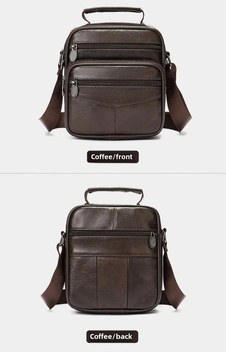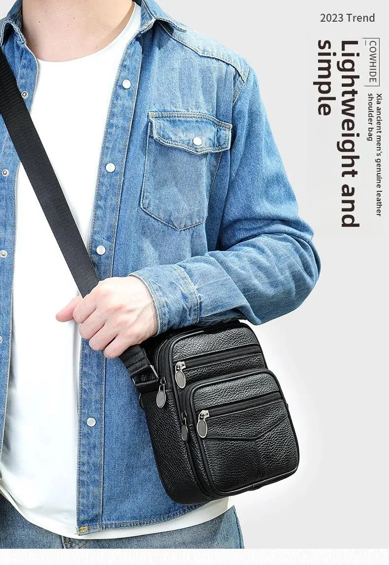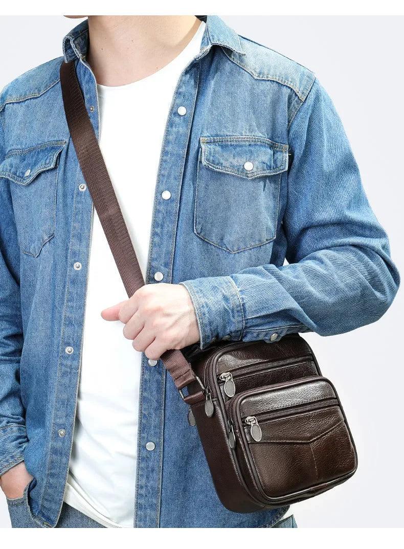 Men’s Genuine Leather Crossbody Bag – Small Outdoor Casual Bag for Motorcycle and Daily Use