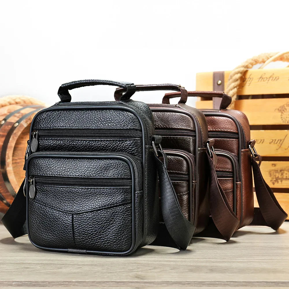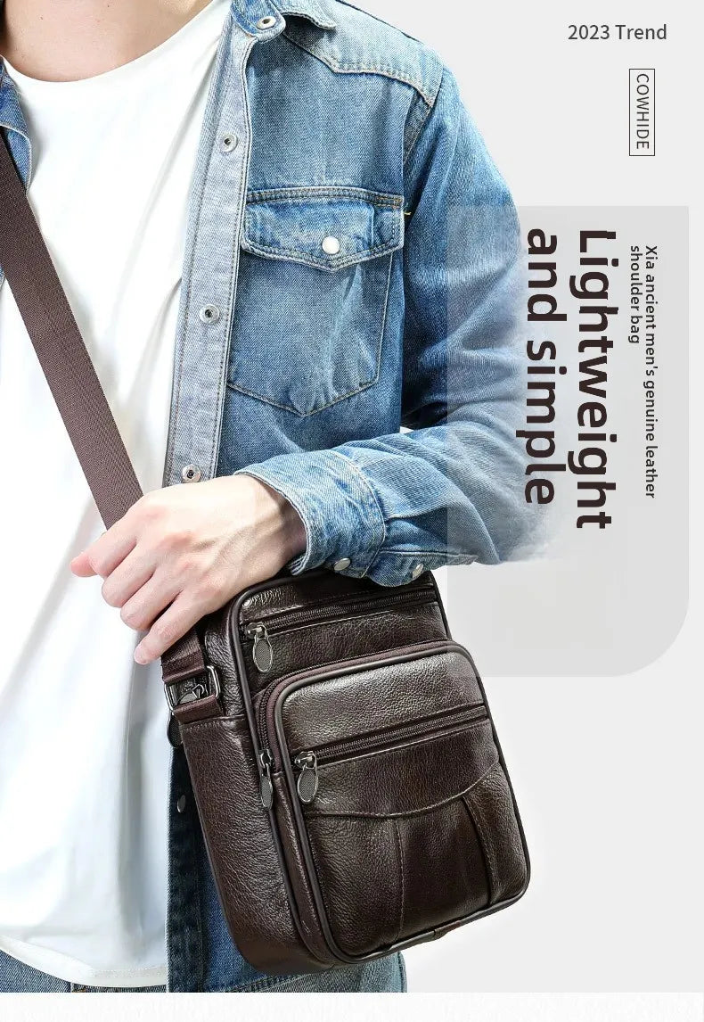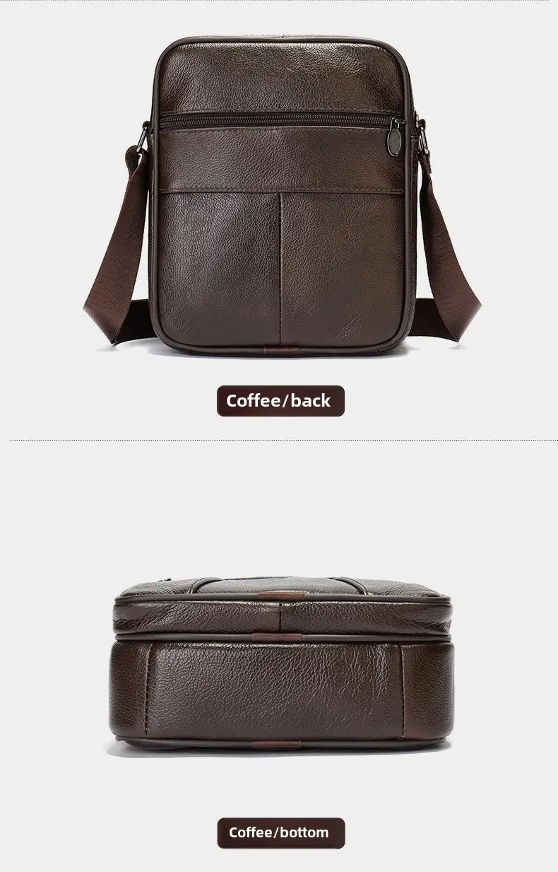 Men’s Genuine Leather Crossbody Bag – Small Outdoor Casual Bag for Motorcycle and Daily Use