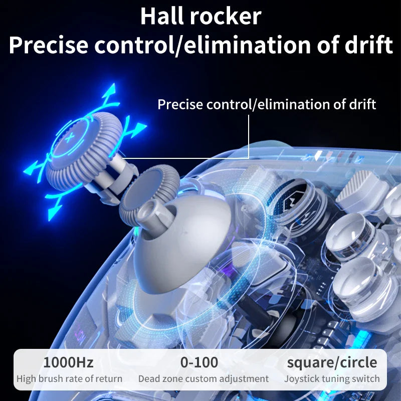 Hall Effect joysticks and Hall-linear trigger buttons for precise control