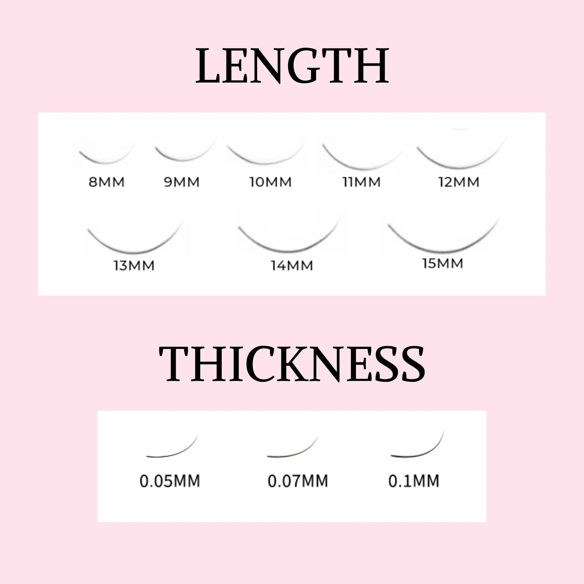 Each fan features a 0.03mm ultra-thin thickness with a pointy sharp base, making them perfect for building volume without weighing down natural lashes. Available in C and D curls, and lengths ranging from 8mm to 15mm, they create a naturally long, wispy effect that enhances every eye shape. Handmade for quality and consistency, these lashes are ideal for salons, professional lash extensions, or DIY lash artists. Each tray contains 500–800 fans, ready to elevate your client’s lash look with minimal effort.