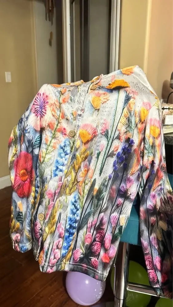 Women’s 3D Print Knitted Cardigan – Thin Vintage Sweater Autumn Winter Chic Knit Top Casual Streetwear