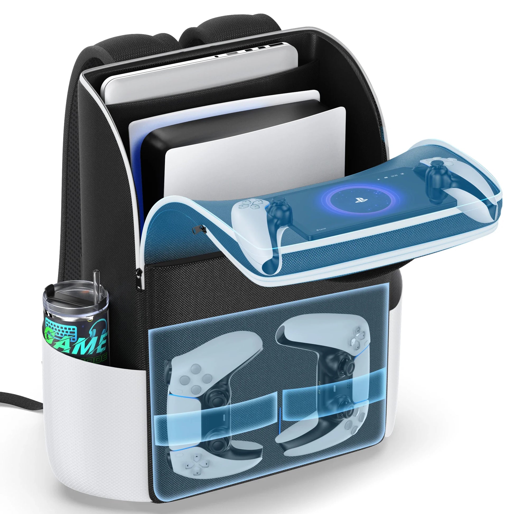 Storage: Large capacity for PS5 console, dual controllers, game cards, laptop, cables
