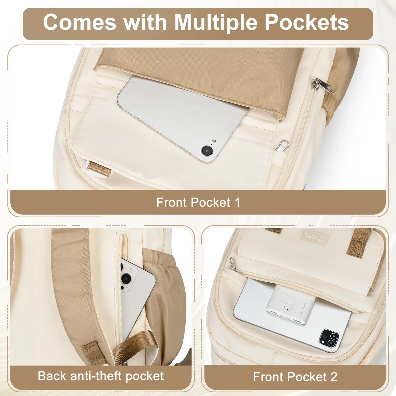 Spacious & Organized: Large main compartment with multiple pockets for laptops, books, stationery, and personal items.