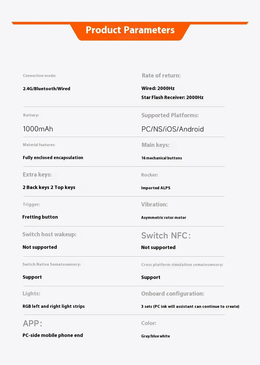Functionality: Somatosensory controllers, customizable gamepad, ultra-responsive 2000Hz input