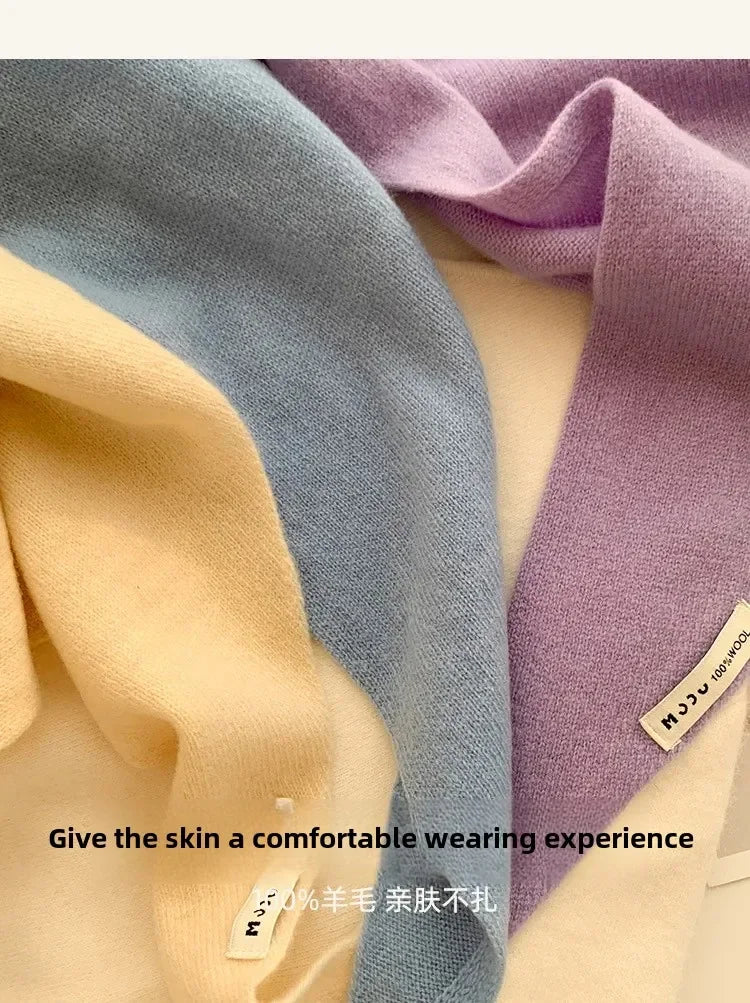 Women’s Wool Triangle Scarf – British Korean Knitted Headscarf & Warm Multi-Functional Wrap