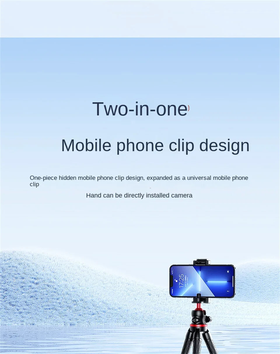 Capture every moment with precision and ease using the BSLIUFANG 2025 Flexible Octopus Tripod, a 2-in-1 mini tripod designed for smartphones, cameras, and DSLRs. Its flexible octopus-style legs allow you to wrap, twist, or stabilize on any surface, giving you ultimate versatility for photography, vlogging, or live streaming. Whether you’re shooting on uneven terrain, a tabletop, or outdoors, this lightweight tripod adapts to your needs.