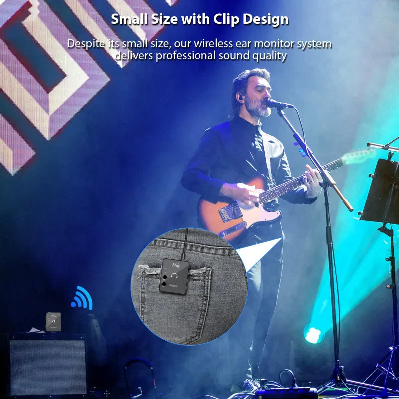 Experience seamless audio with the Btuty 2.4GHz Wireless Earphone Monitor Transmission System — a high-performance digital solution designed for musicians, performers, and audio enthusiasts. This system includes a rechargeable transmitter and receiver, delivering lossless digital transmission for crystal-clear sound without the hassle of wires. Ideal for live performances, studio monitoring, or practice sessions, it ensures reliable connectivity and professional-grade audio quality.