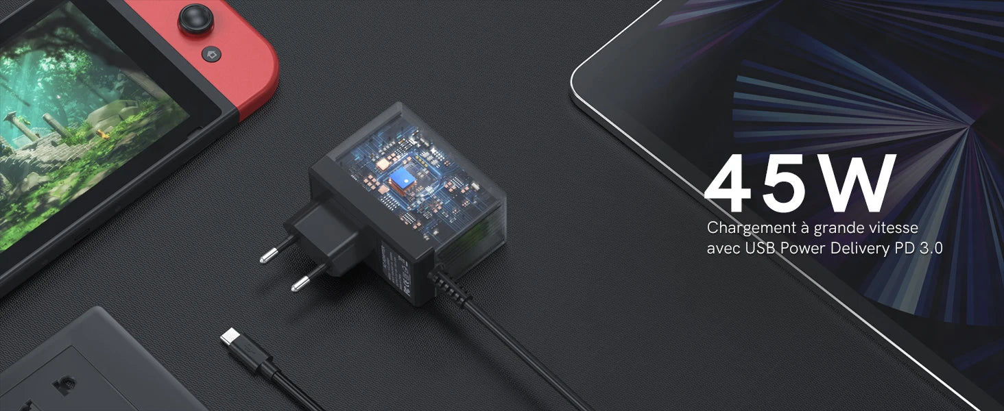 45W AC Adapter Charger for Nintendo Switch – Fast Charging for Switch Lite, Dock & Pro Controller