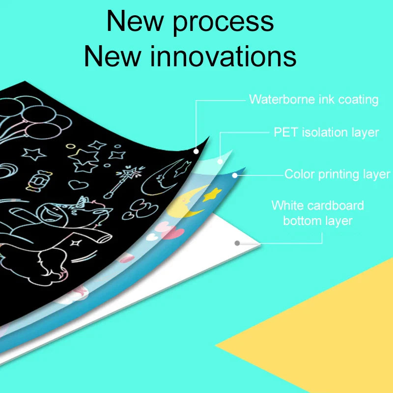 Made from high-quality paper and CE-certified for safety, this scratch painting kit contains no paints or batteries, making it clean, safe, and ready for instant artistic exploration. Ideal for both boys and girls, it’s a versatile art supply set that nurtures creativity while keeping children engaged.