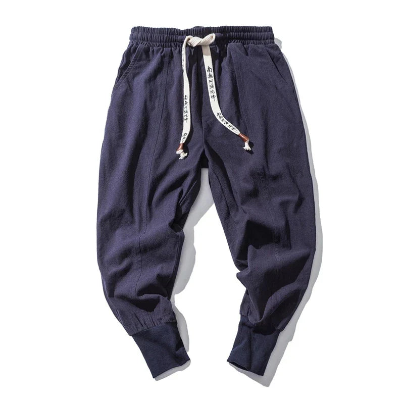 Men’s Cotton Linen Harem Pants – Solid Color Baggy Drop-Crotch Joggers with Elastic Waist Casual Streetwear Trousers
