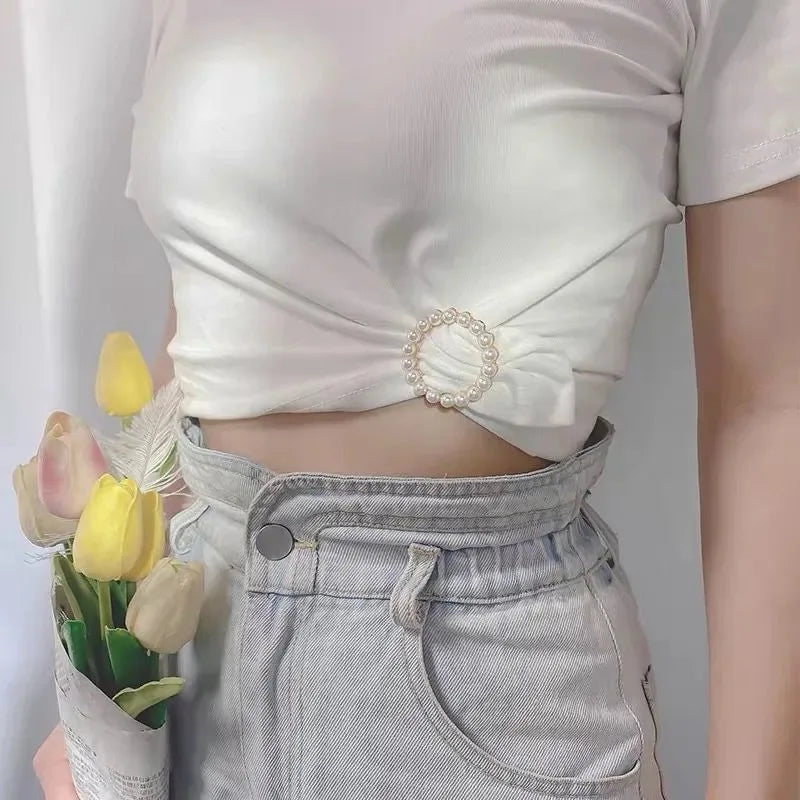 Crafted with zinc alloy, clay, and rhinestone pearls, each buckle offers durable construction with a chic, trendy look. The geometric design adds a modern edge to your clothing while the knotting function allows you to adjust and style T-shirts, scarves, and other garments with ease.