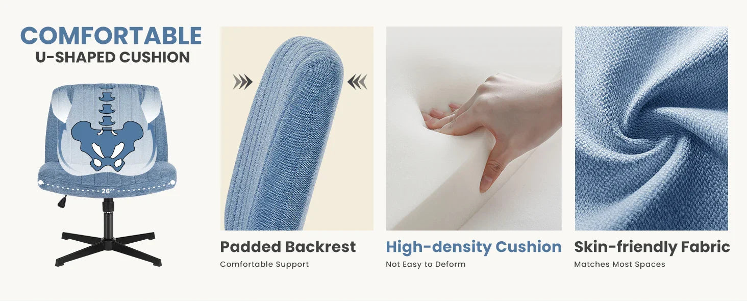 Criss-Cross Leg Office Chair – Armless Wide Seat, Height Adjustable Swivel for Home or Desk