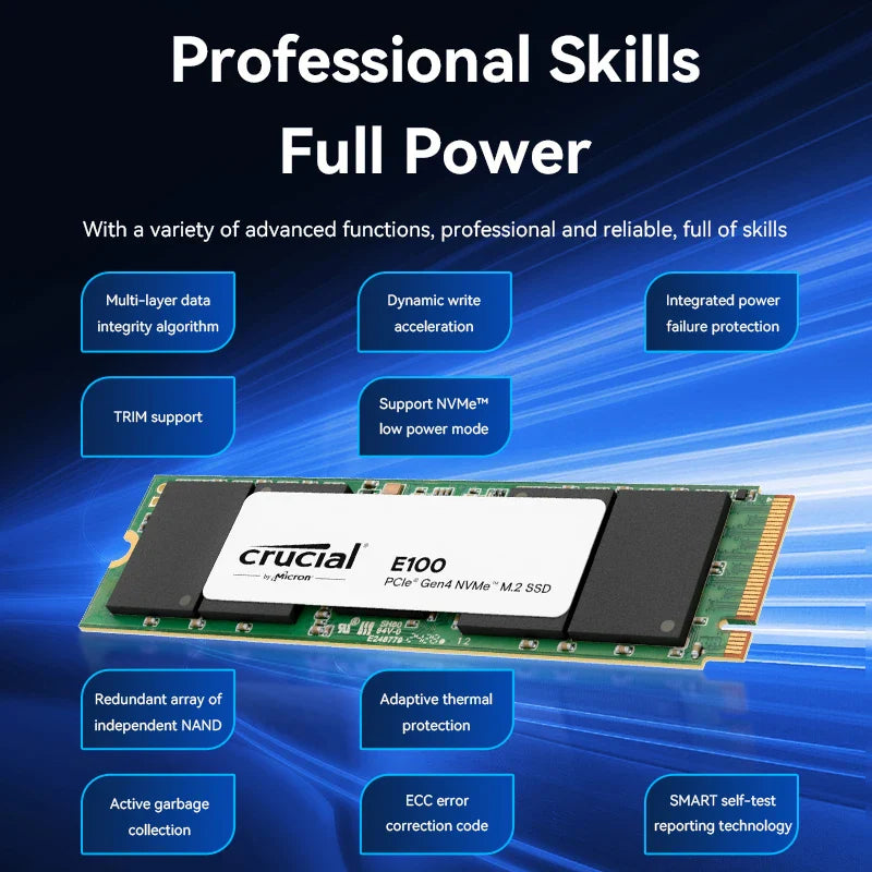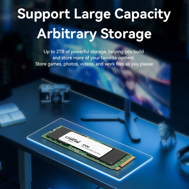Available in 480GB, 1TB, and 2TB, the M.2 2280 form factor allows easy installation in desktops, laptops, and even high-performance gaming consoles. Built with QLC NAND flash and a trusted Crucial controller, it provides reliable and durable storage for all your applications, games, and media.