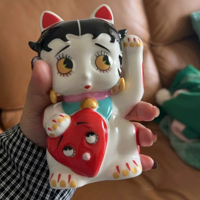 Cute Ceramic Lucky Cat Statue – Cartoon Home Decor for Living Room, Bedroom & Store
