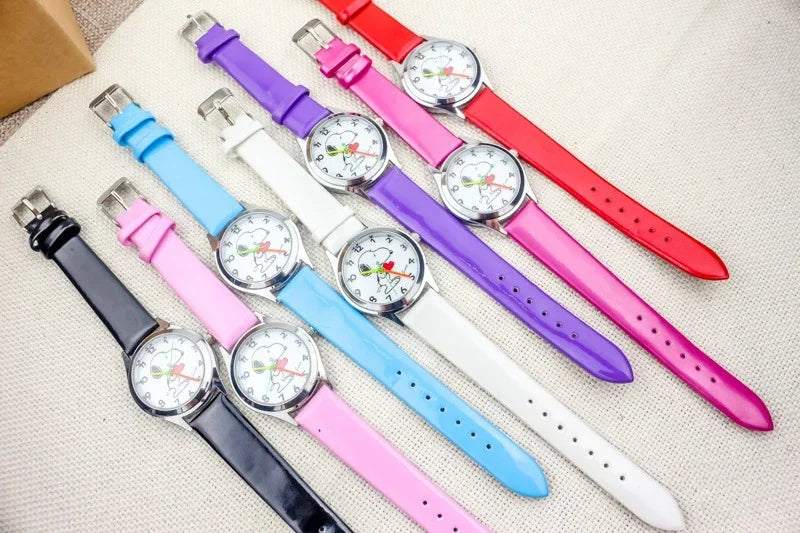 Cute Snoopy Kids Quartz Watch — Kawaii Anime Wristwatch with Colorful Luminous Hands, Fashionable Gift for Boys