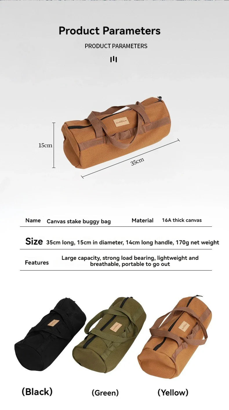 Cylinder Handheld Storage Bag – Large Capacity Thickened Camping Tent Peg and Tool Organizer Bag