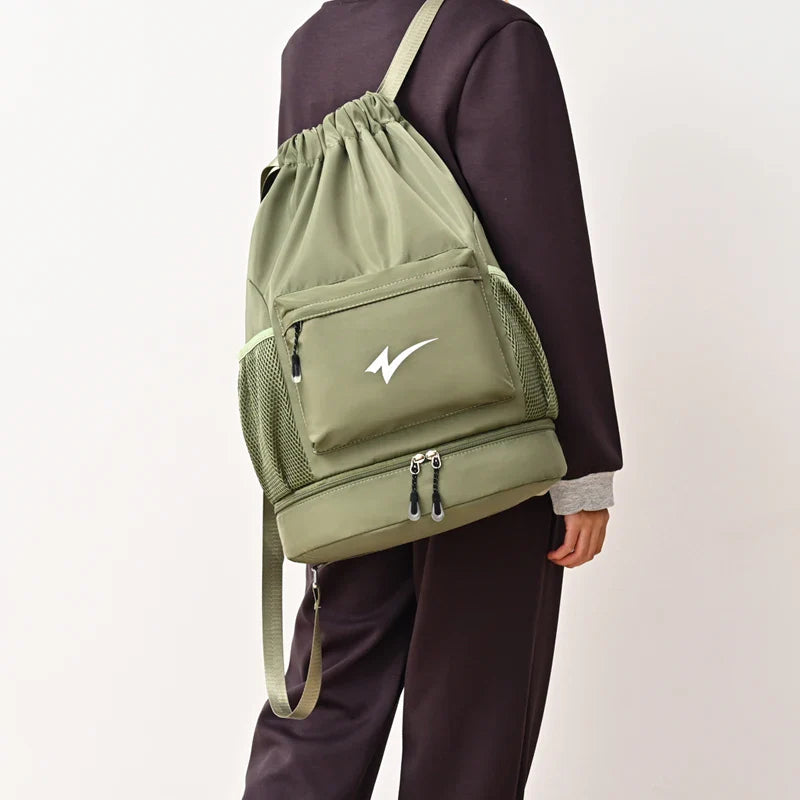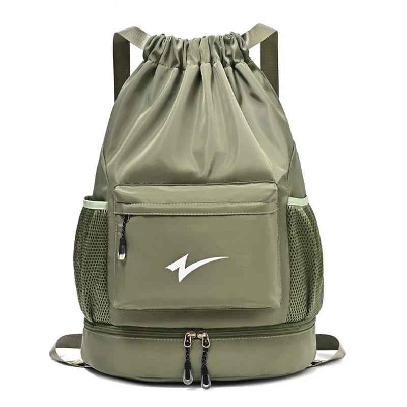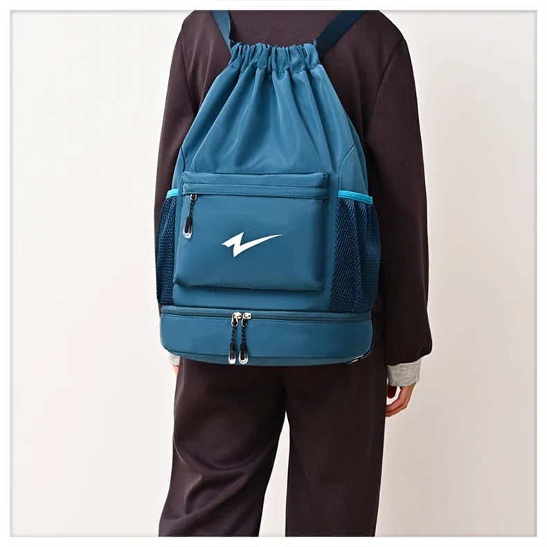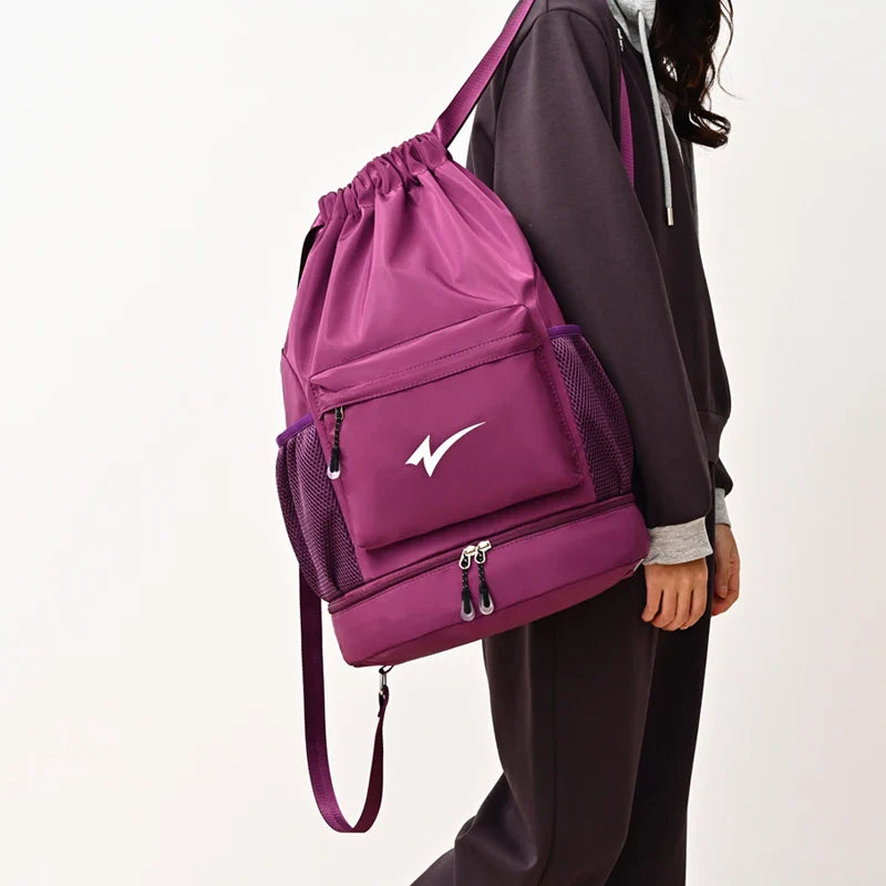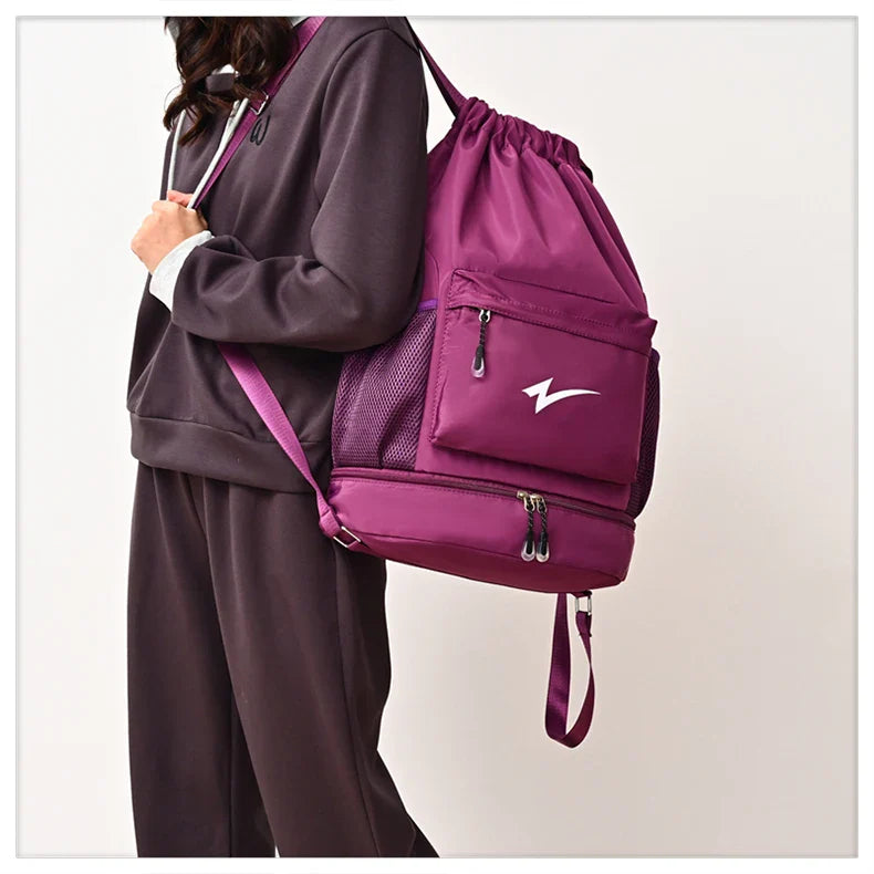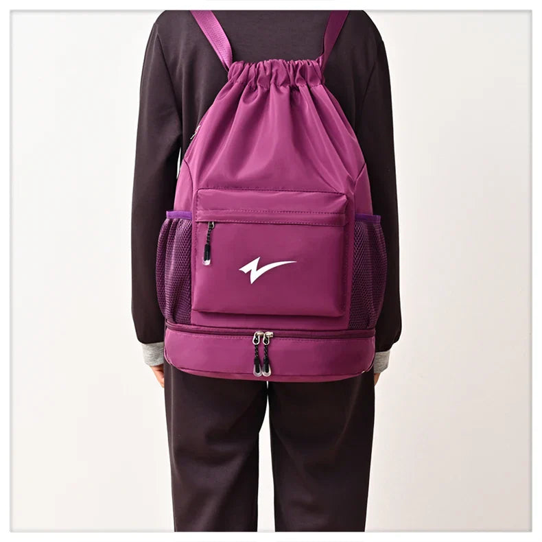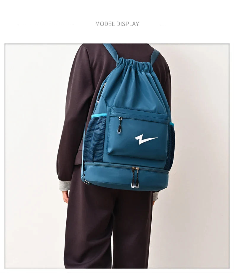 Drawstring Fitness Bag — Lightweight Multi-Pocket Gym Backpack with Separate Shoe Compartment, Foldable Outdoor Training Bag