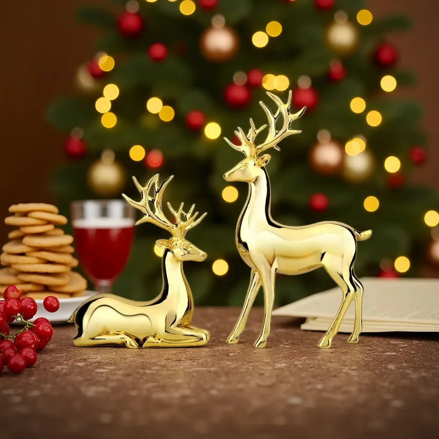 Elegant Resin Reindeer Statue – Plated Luxury Christmas Ornament for Living Room & Dining Table Decor