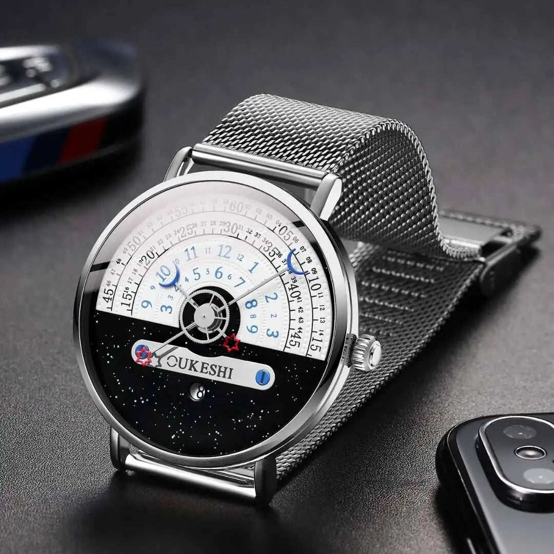 Men’s Fashion Mesh Band Quartz Watch — Business Wristwatch with Calendar Reloj Hombre