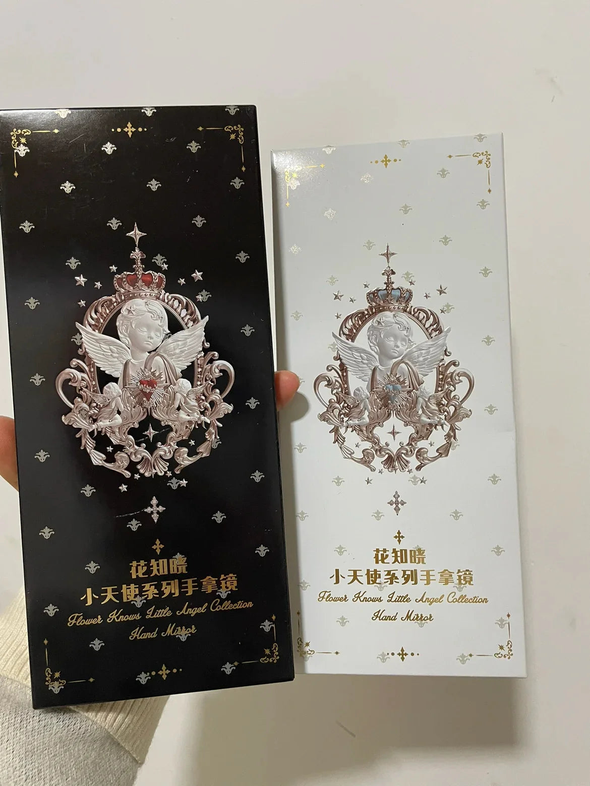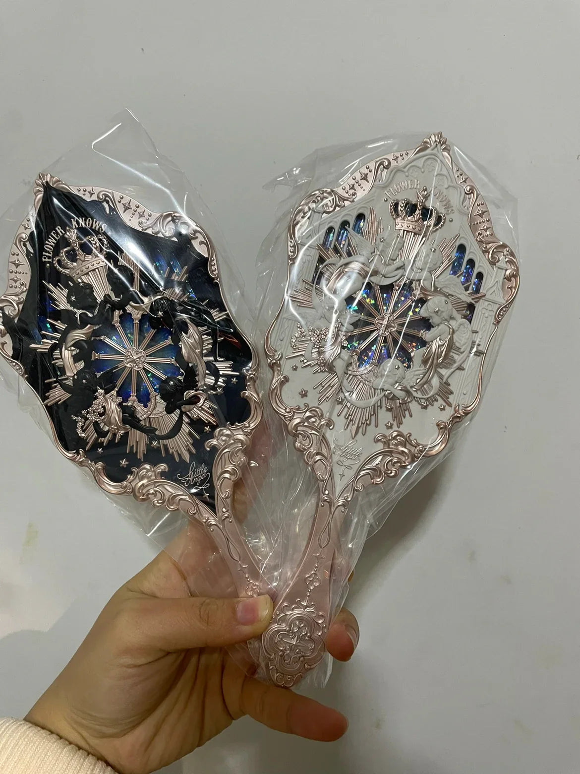 Flower Knows Angel Series Handheld Mirror – White, Black & Pink Compact Mirror