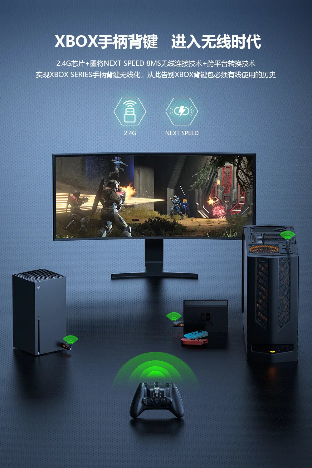 Elevate your gaming experience with the BIGBIG WON Battle Armor XPRO Wireless Back Button, designed for Xbox Series controllers, Nintendo Switch, and PC. This high-performance game controller accessory adds remappable back buttons, giving you faster reactions, enhanced control, and a more immersive sensory experience during gameplay.