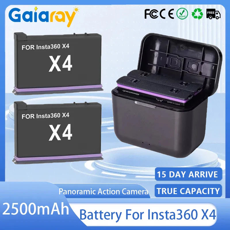 Insta360 X4 Battery 3.85V 2500mAh – Rechargeable Li-ion with Fast Charging Case & Storage Box for 360 Panoramic Action Cameras