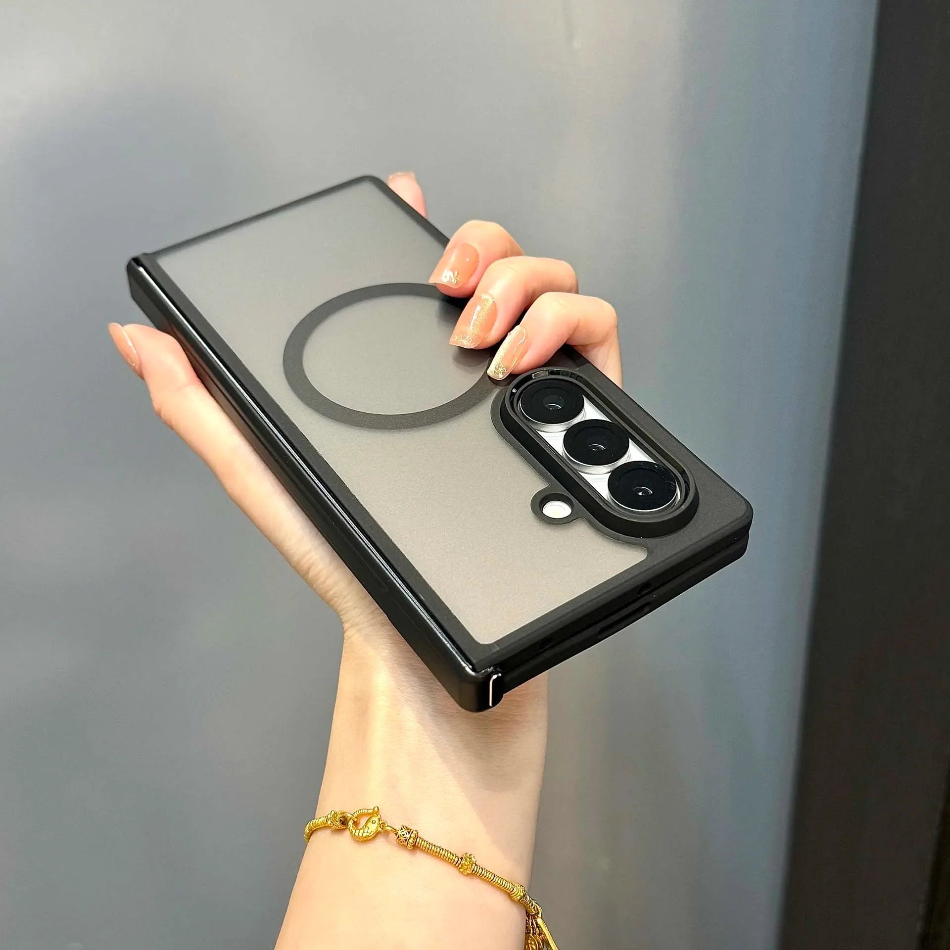 MagSafe-Compatible Case for Samsung Galaxy Z Fold 7 – Translucent Hinge, Shockproof Folding Cover with Magnetic Wireless Charging