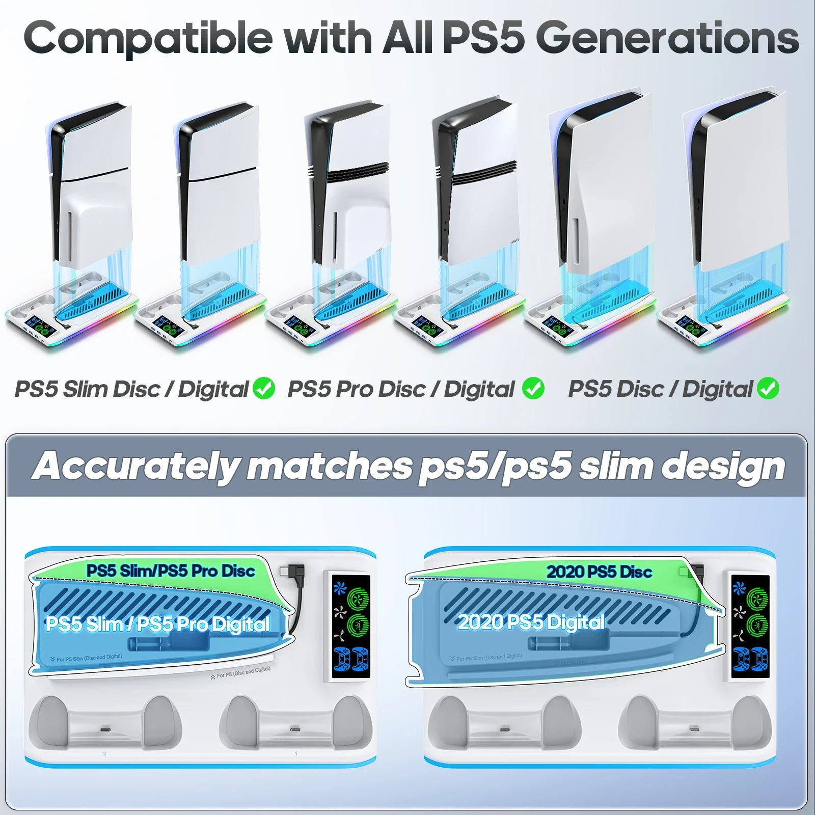 PS5 Game Stand with Cooler Fan — RGB Support Base & Holder for Sony PS5, Slim & Pro | Gaming Accessories