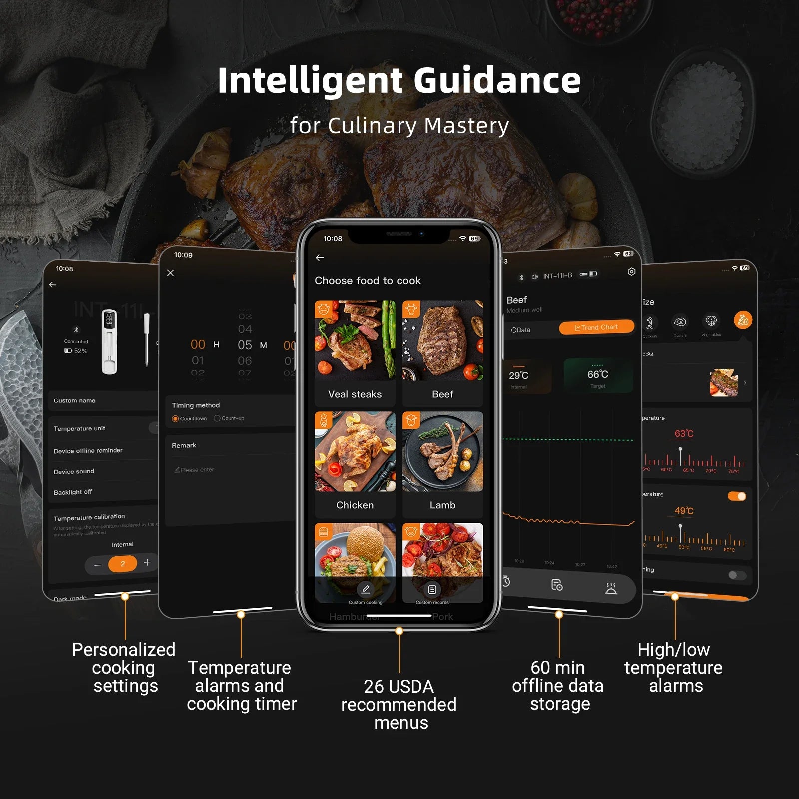 26 USDA-Approved Presets: Ideal for steak, chicken, fish, and more