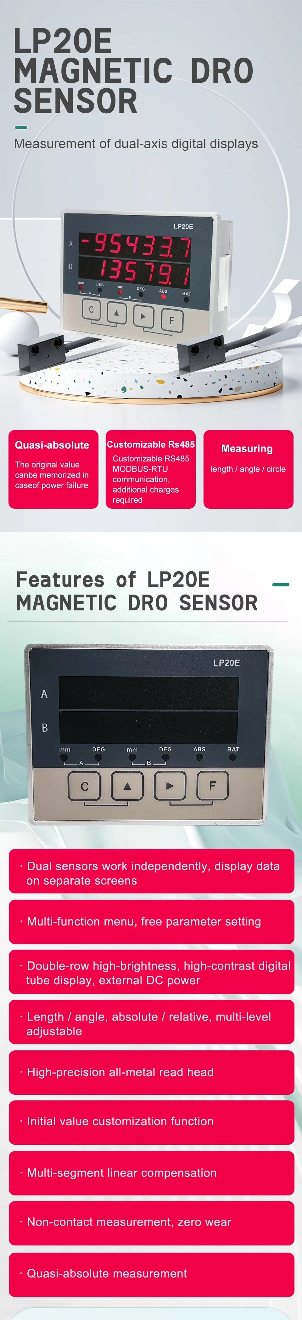 LP20E 2-Axis Digital DRO – Magnetic Sensor Tape Displacement Readout Scale for CNC Lathe & Woodworking Machines