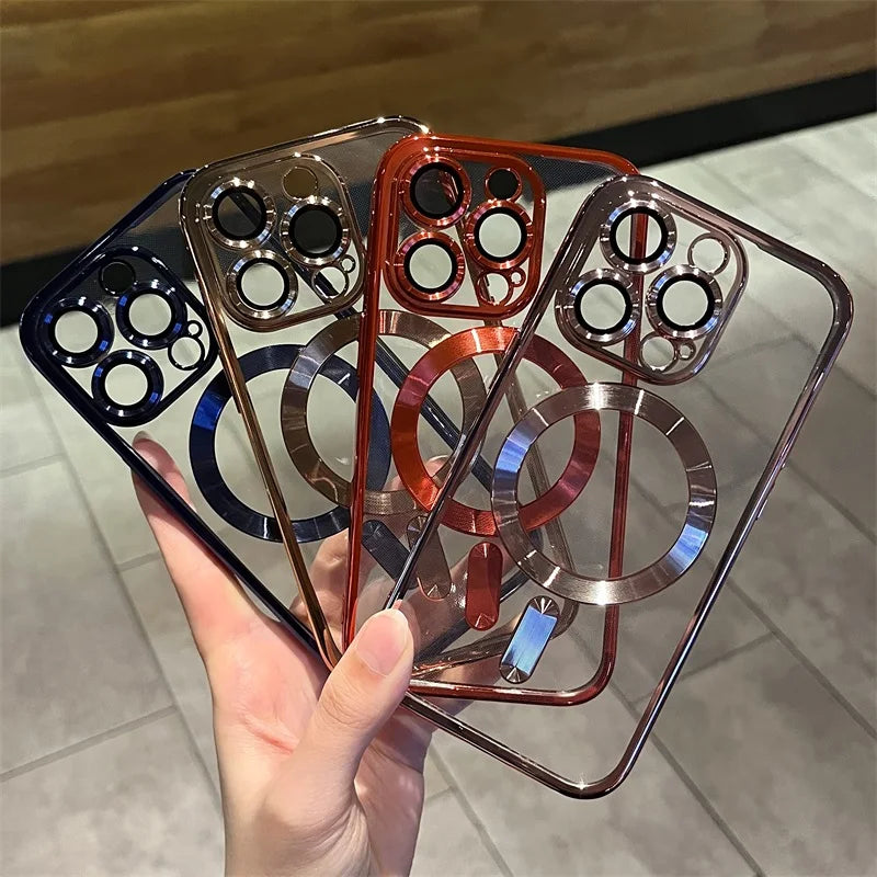 Elevate your iPhone protection with the Luxury Plating Magsafe Wireless Charge Case — a sleek, ultra-slim clear silicone cover designed for iPhone 11 through iPhone 17 Pro Max, including 16E. Combining luxury aesthetics with practical functionality, this magnetic case ensures your phone stays protected while maintaining a premium, transparent look.
